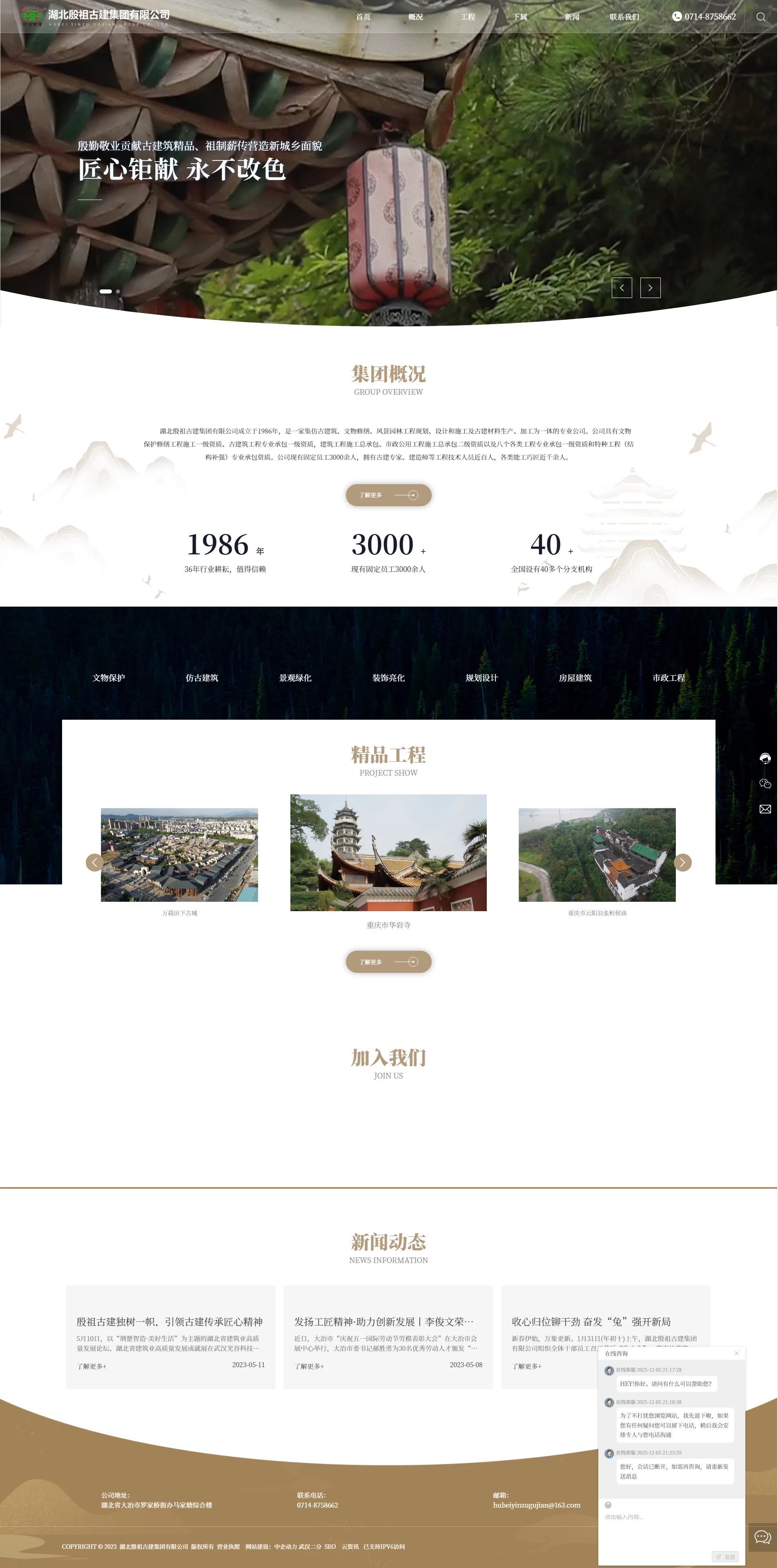 湖北殷祖古建集团有限公司成立于1986年,是一家集仿古建筑、文物修缮、风景园林工程规划、设计和施工及古建材料生产、加工为一体的专业公司。公司具有文物保护修缮工程施工一级资质、古建筑工程专业承包一级资质,建筑工程施工总承包、市政公用工程施工总承包二级资质以及八个各类工程专业承包一级资质和特种工程(结构补强)专业承包资质。公司现有固定员工3000余人,拥有古建专家、建造师等工程技术人员近百人,各类能工巧匠近千余人。
