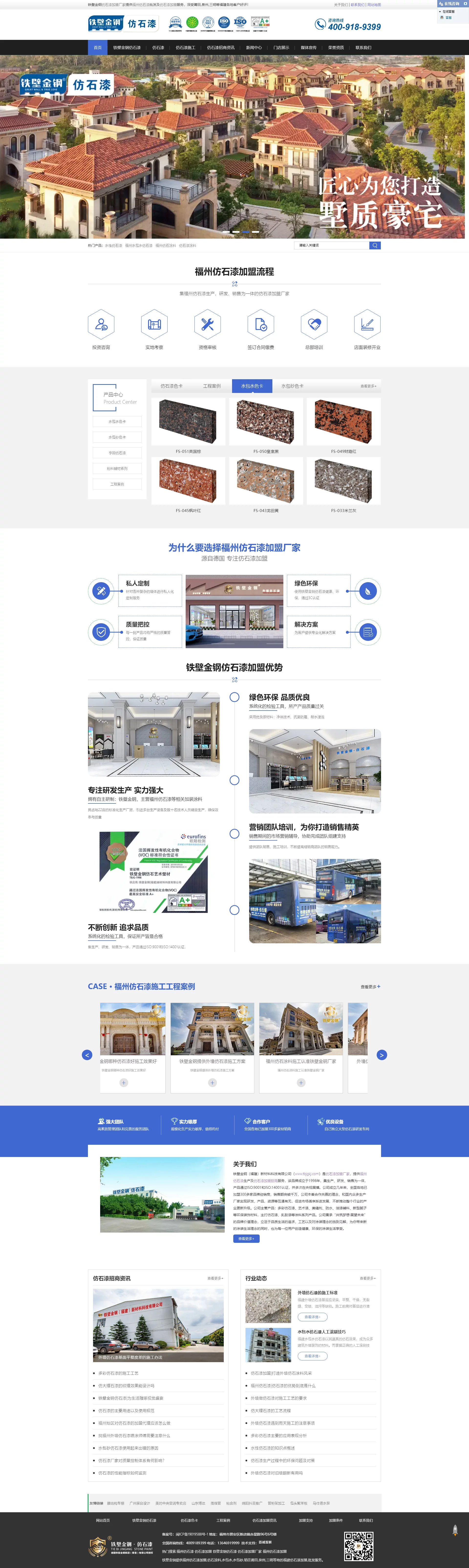 铁壁金钢(福建)新材料科技有限公司(www.tbjgkj.com)是仿石漆加盟厂家,提供福州仿石漆生产及仿石漆加盟招商服务,该品牌成立于1998年,集生产、研发、销售为一体,产品通过ISO:9001和ISO:14001认证,并多次在央视展播。公司成立几年来,全国各地已加盟300多家品牌经销商,销售额突破千万,公司本着合作共赢的理念,和国内众多生产厂家实现研发、产品、资源等互通有无,促进市场循序渐进发展,不断推动整个行业的产业更新升级。公司主营产品:多彩仿石漆、艺术漆、美缝剂、防水、油漆辅料、新型腻子等环保装饰材料,主打仿石漆、乳胶漆等涂料系列产品。公司秉承“共筑梦想·展望未来”的品牌价值理念,立足于品质生活的追求,工艺以及对涂装理念的独到见解,为你带来新的涂装生活理念的同时,也为每一位用户创造健康、环保的涂装生活享受。